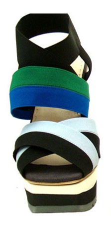 温馨提示:1.因拍摄光线及个人电脑萤幕设定,商品可能略有色差,但在正常范围之内。 2.此商品Prada 普拉达2011新款 蓝绿布面拼接超厚弹性楔形底凉鞋1XZ158 3AUU F0L2U性感女鞋,精品女鞋。